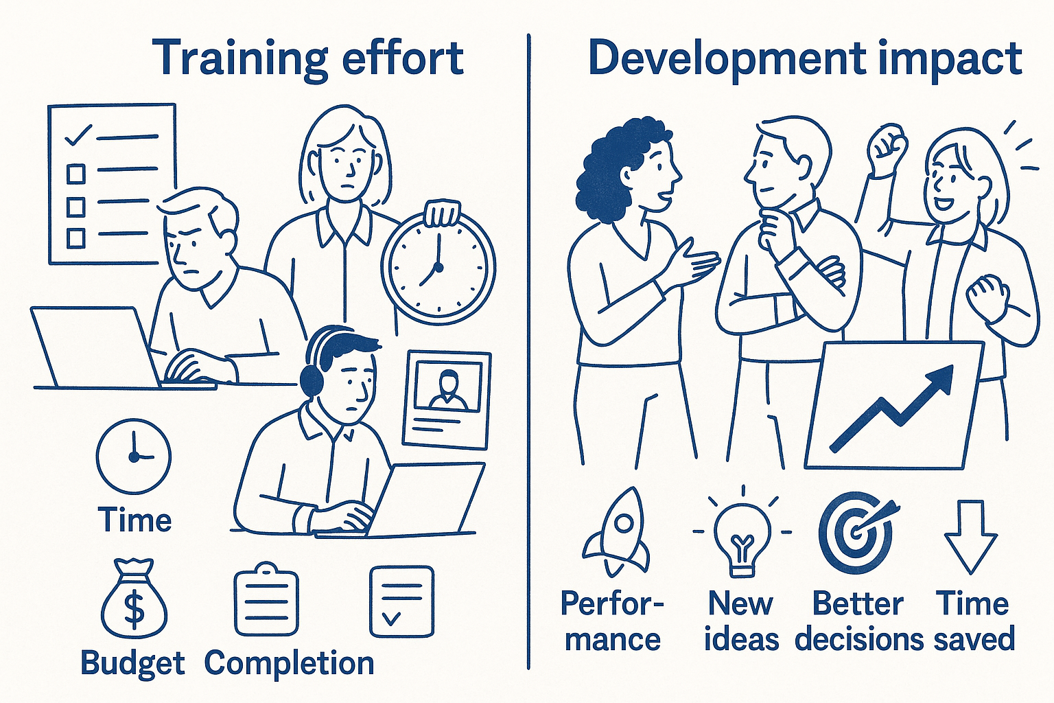 Nicht Stunden oder Budgets zählen, sondern ob Menschen anders arbeiten und handeln. Das wahre Erfolgskriterium herauszufinden ist erfolgsentscheidend.